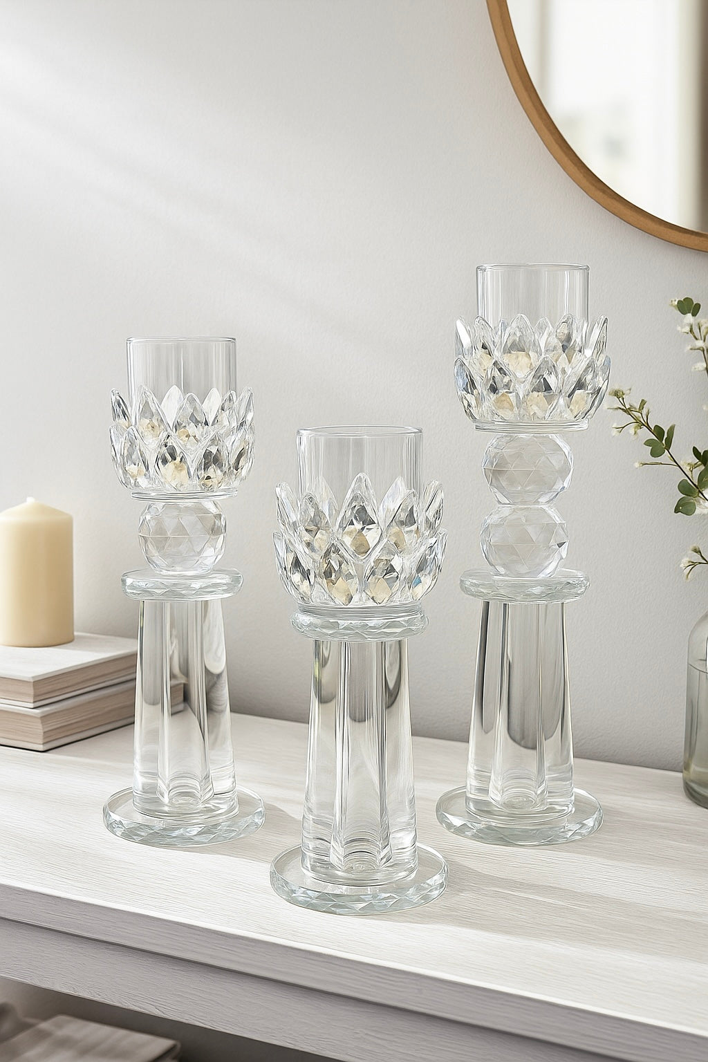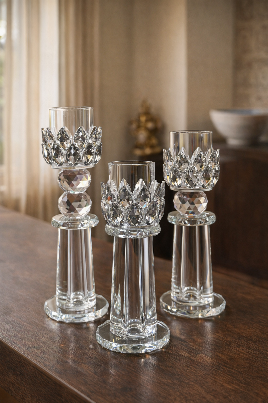 Aurum Orb Crystal Candle Holder Set