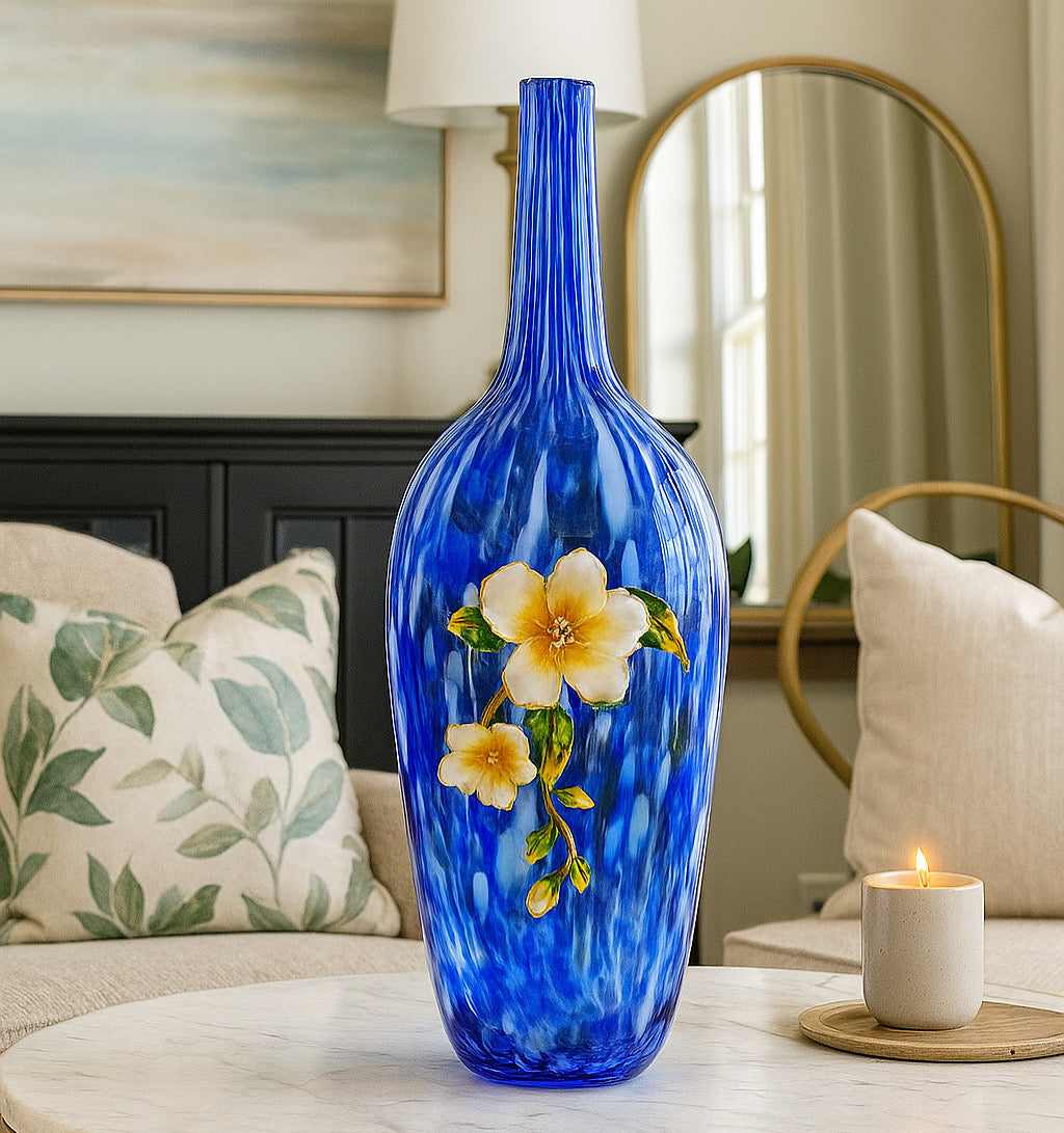 Azure Bloom Handblown Glass Vase