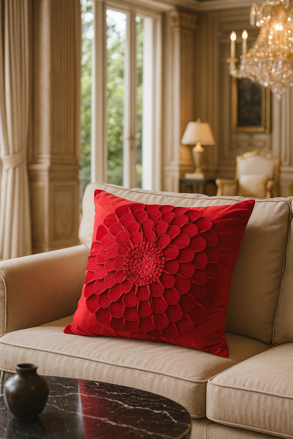 The Petalia Bloom Velvet Cushion Cover is a celebration of sculpted artistry and luxurious texture. Crafted with meticulous precision, each cushion features individually hand-cut velvet petals arranged in a striking concentric bloom — creating a three-dimensional floral motif that adds depth, elegance, and timeless beauty to any living space.